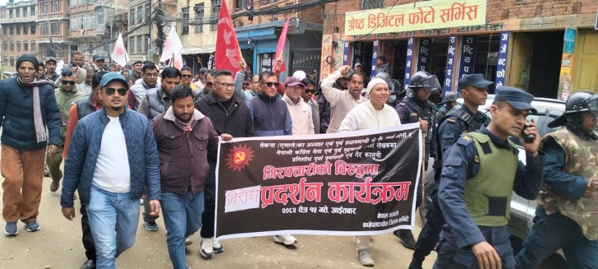 काठमाडौं, १५ चैत । प्रहरीले तत्कालीन प्रधानमन्त्री केपी शर्मा ओली र तत्कालीन गृहमन्त्री रमेश लेखकलाई शनिबार पक्राउ गरेपछि एमालेले आज पनि देशभर प्रदर्शन गरेको छ।